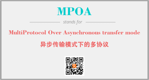 上述内容是“MultiProtocol Over Asynchronous transfer mode”作为“MPOA”的缩写,解释为“异步传输模式下的多协议”时的信息,以及英文缩略词MPOA所代表的英文单词,其对应的中文拼音、详细解释以及在英文中的流行度和相关分类、应用领域及应用示例等。