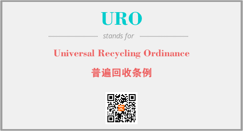 上述内容是“Universal Recycling Ordinance”作为“URO”的缩写,解释为“普遍回收条例”时的信息,以及英文缩略词URO所代表的英文单词,其对应的中文拼音、详细解释以及在英文中的流行度和相关分类、应用领域及应用示例等。