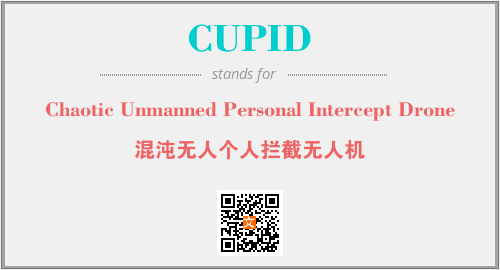 上述内容是“Chaotic Unmanned Personal Intercept Drone”作为“CUPID”的缩写,解释为“混沌无人个人拦截无人机”时的信息,以及英文缩略词CUPID所代表的英文单词,其对应的中文拼音、详细解释以及在英文中的流行度和相关分类、应用领域及应用示例等。