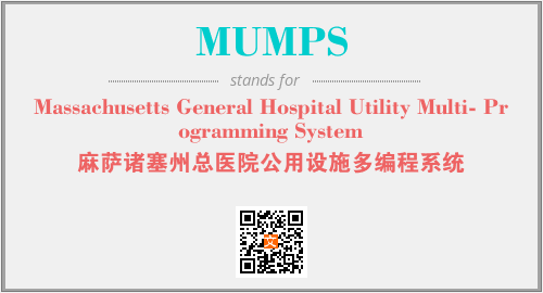 英文缩略词“MUMPS”经常作为“Massachusetts General Hospital Utility Multi- Programming System”的英文缩写来使用,中文表示:“麻萨诸塞州总医院公用设施多编程系统”。本文将详细介绍英文缩写词MUMPS所代表英文单词,其对应的中文拼音、详细解释以及在英语中的流行度。此外,还有关于缩略词MUMPS的分类、应用领域及相关应用示例等。