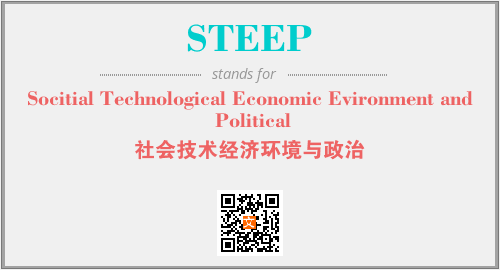 上述内容是“Socitial Technological Economic Evironment and Political”作为“STEEP”的缩写,解释为“社会技术经济环境与政治”时的信息,以及英文缩略词STEEP所代表的英文单词,其对应的中文拼音、详细解释以及在英文中的流行度和相关分类、应用领域及应用示例等。