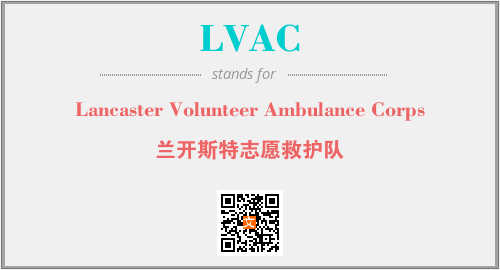 上述内容是“Lancaster Volunteer Ambulance Corps”作为“LVAC”的缩写,解释为“兰开斯特志愿救护队”时的信息,以及英文缩略词LVAC所代表的英文单词,其对应的中文拼音、详细解释以及在英文中的流行度和相关分类、应用领域及应用示例等。