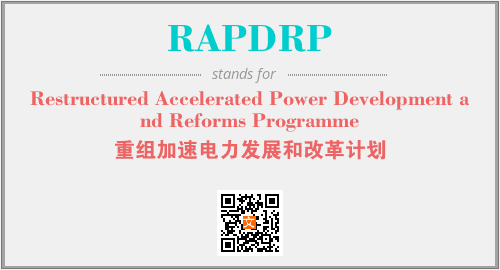 上述内容是“Restructured Accelerated Power Development and Reforms Programme”作为“RAPDRP”的缩写,解释为“重组加速电力发展和改革计划”时的信息,以及英文缩略词RAPDRP所代表的英文单词,其对应的中文拼音、详细解释以及在英文中的流行度和相关分类、应用领域及应用示例等。