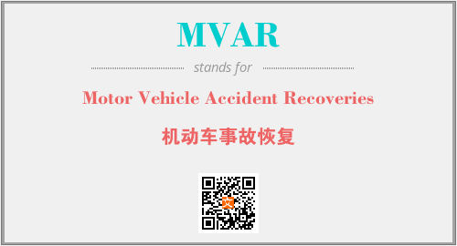 上述内容是“Motor Vehicle Accident Recoveries”作为“MVAR”的缩写,解释为“机动车事故恢复”时的信息,以及英文缩略词MVAR所代表的英文单词,其对应的中文拼音、详细解释以及在英文中的流行度和相关分类、应用领域及应用示例等。
