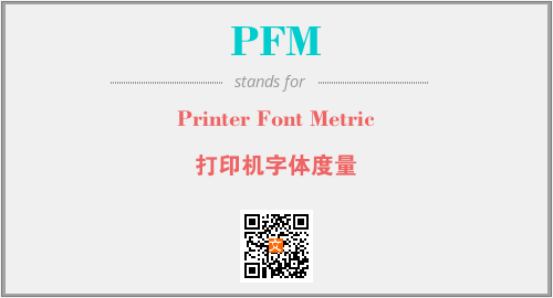 英文缩略词“PFM”经常作为“Printer Font Metric”的英文缩写来使用,中文表示:“打印机字体度量”。本文将详细介绍英文缩写词PFM所代表英文单词,其对应的中文拼音、详细解释以及在英语中的流行度。此外,还有关于缩略词PFM的分类、应用领域及相关应用示例等。