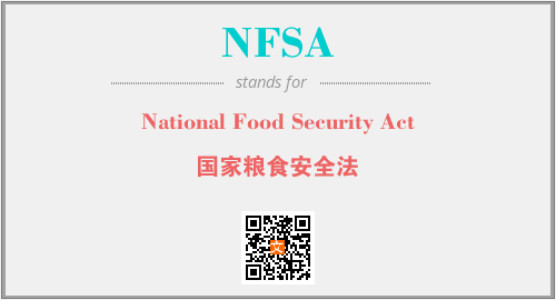 上述内容是“National Food Security Act”作为“NFSA”的缩写,解释为“国家粮食安全法”时的信息,以及英文缩略词NFSA所代表的英文单词,其对应的中文拼音、详细解释以及在英文中的流行度和相关分类、应用领域及应用示例等。
