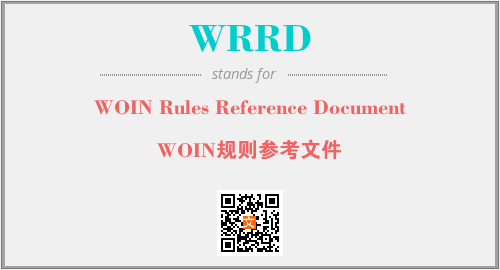 上述内容是“WOIN Rules Reference Document”作为“WRRD”的缩写,解释为“WOIN规则参考文件”时的信息,以及英文缩略词WRRD所代表的英文单词,其对应的中文拼音、详细解释以及在英文中的流行度和相关分类、应用领域及应用示例等。