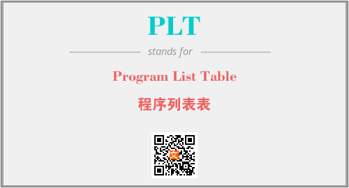 英文缩略词“PLT”经常作为“Program List Table”的英文缩写来使用,中文表示:“程序列表表”。本文将详细介绍英文缩写词PLT所代表英文单词,其对应的中文拼音、详细解释以及在英语中的流行度。此外,还有关于缩略词PLT的分类、应用领域及相关应用示例等。