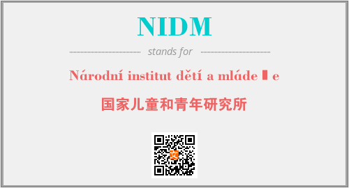 上述内容是“Národní institut dětí a mládeže”作为“NIDM”的缩写,解释为“国家儿童和青年研究所”时的信息,以及英文缩略词NIDM所代表的英文单词,其对应的中文拼音、详细解释以及在英文中的流行度和相关分类、应用领域及应用示例等。