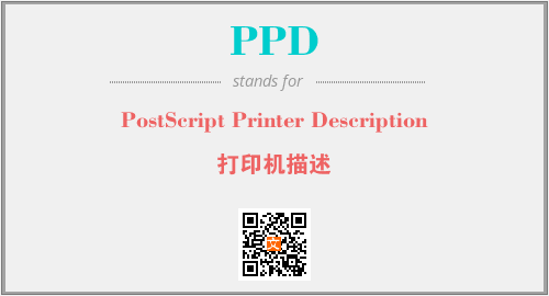 英文缩略词“PPD”经常作为“PostScript Printer Description”的英文缩写来使用,中文表示:“打印机描述”。本文将详细介绍英文缩写词PPD所代表英文单词,其对应的中文拼音、详细解释以及在英语中的流行度。此外,还有关于缩略词PPD的分类、应用领域及相关应用示例等。