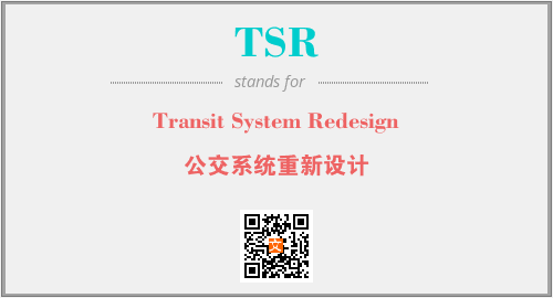 上述内容是“Transit System Redesign”作为“TSR”的缩写,解释为“公交系统重新设计”时的信息,以及英文缩略词TSR所代表的英文单词,其对应的中文拼音、详细解释以及在英文中的流行度和相关分类、应用领域及应用示例等。