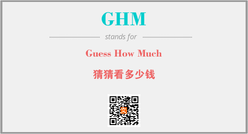 上述内容是“Guess How Much”作为“GHM”的缩写,解释为“猜猜看多少钱”时的信息,以及英文缩略词GHM所代表的英文单词,其对应的中文拼音、详细解释以及在英文中的流行度和相关分类、应用领域及应用示例等。