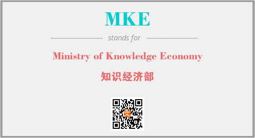 上述内容是“Ministry of Knowledge Economy”作为“MKE”的缩写,解释为“知识经济部”时的信息,以及英文缩略词MKE所代表的英文单词,其对应的中文拼音、详细解释以及在英文中的流行度和相关分类、应用领域及应用示例等。
