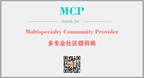 英文缩略词“MCP”经常作为“Multispecialty Community Provider”的英文缩写来使用,中文表示:“多专业社区提供商”。本文将详细介绍英文缩写词MCP所代表英文单词,其对应的中文拼音、详细解释以及在英语中的流行度。此外,还有关于缩略词MCP的分类、应用领域及相关应用示例等。