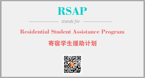 以上为Residential Student Assistance Program英文缩略词RSAP的中文解释,以及该英文缩写在英语的流行度、分类和应用领域方面的信息。