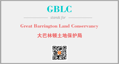 上述内容是“Great Barrington Land Conservancy”作为“GBLC”的缩写,解释为“大巴林顿土地保护局”时的信息,以及英文缩略词GBLC所代表的英文单词,其对应的中文拼音、详细解释以及在英文中的流行度和相关分类、应用领域及应用示例等。
