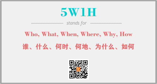 上述内容是“Who, What, When, Where, Why, How”作为“5W1H”的缩写,解释为“谁、什么、何时、何地、为什么、如何”时的信息,以及英文缩略词5W1H所代表的英文单词,其对应的中文拼音、详细解释以及在英文中的流行度和相关分类、应用领域及应用示例等。