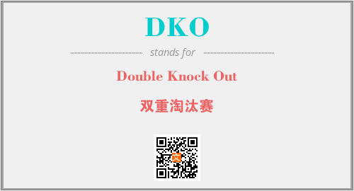 英文缩略词“DKO”经常作为“Double Knock Out”的英文缩写来使用,中文表示:“双重淘汰赛”。本文将详细介绍英文缩写词DKO所代表英文单词,其对应的中文拼音、详细解释以及在英语中的流行度。此外,还有关于缩略词DKO的分类、应用领域及相关应用示例等。