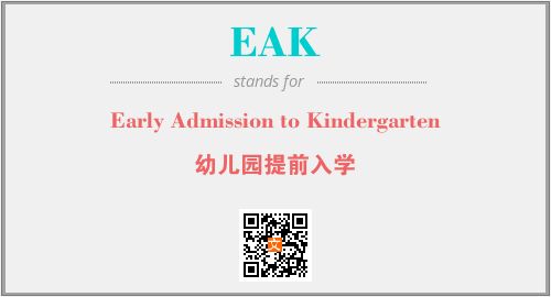 英文缩略词“EAK”经常作为“Early Admission to Kindergarten”的英文缩写来使用,中文表示:“幼儿园提前入学”。本文将详细介绍英文缩写词EAK所代表英文单词,其对应的中文拼音、详细解释以及在英语中的流行度。此外,还有关于缩略词EAK的分类、应用领域及相关应用示例等。