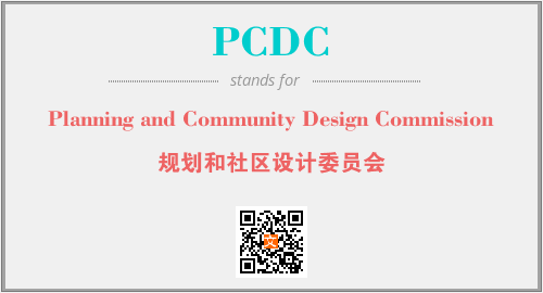 上述内容是“Planning and Community Design Commission”作为“PCDC”的缩写,解释为“规划和社区设计委员会”时的信息,以及英文缩略词PCDC所代表的英文单词,其对应的中文拼音、详细解释以及在英文中的流行度和相关分类、应用领域及应用示例等。