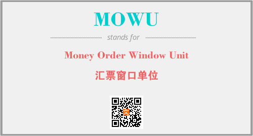 英文缩略词“MOWU”经常作为“Money Order Window Unit”的英文缩写来使用,中文表示:“汇票窗口单位”。本文将详细介绍英文缩写词MOWU所代表英文单词,其对应的中文拼音、详细解释以及在英语中的流行度。此外,还有关于缩略词MOWU的分类、应用领域及相关应用示例等。