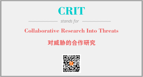 上述内容是“Collaborative Research Into Threats”作为“CRIT”的缩写,解释为“对威胁的合作研究”时的信息,以及英文缩略词CRIT所代表的英文单词,其对应的中文拼音、详细解释以及在英文中的流行度和相关分类、应用领域及应用示例等。