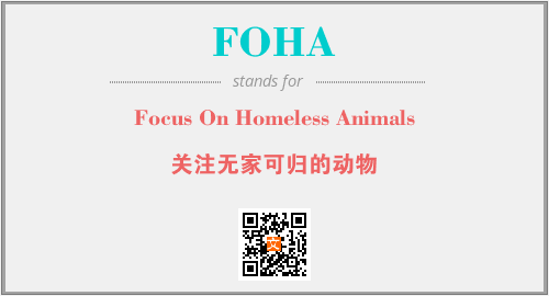 上述内容是“Focus On Homeless Animals”作为“FOHA”的缩写,解释为“关注无家可归的动物”时的信息,以及英文缩略词FOHA所代表的英文单词,其对应的中文拼音、详细解释以及在英文中的流行度和相关分类、应用领域及应用示例等。