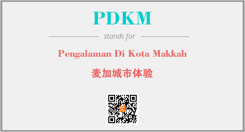 英文缩略词“PDKM”经常作为“Pengalaman Di Kota Makkah”的英文缩写来使用,中文表示:“麦加城市体验”。本文将详细介绍英文缩写词PDKM所代表英文单词,其对应的中文拼音、详细解释以及在英语中的流行度。此外,还有关于缩略词PDKM的分类、应用领域及相关应用示例等。