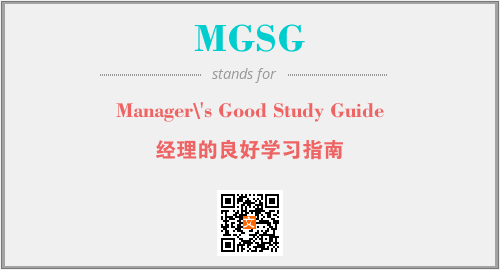 以上为Manager\'s Good Study Guide英文缩略词MGSG的中文解释,以及该英文缩写在英语的流行度、分类和应用领域方面的信息。