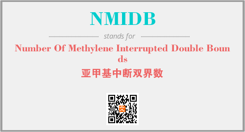 上述内容是“Number Of Methylene Interrupted Double Bounds”作为“NMIDB”的缩写,解释为“亚甲基中断双界数”时的信息,以及英文缩略词NMIDB所代表的英文单词,其对应的中文拼音、详细解释以及在英文中的流行度和相关分类、应用领域及应用示例等。