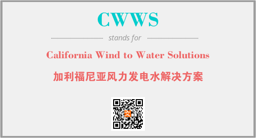 上述内容是“California Wind to Water Solutions”作为“CWWS”的缩写,解释为“加利福尼亚风力发电水解决方案”时的信息,以及英文缩略词CWWS所代表的英文单词,其对应的中文拼音、详细解释以及在英文中的流行度和相关分类、应用领域及应用示例等。