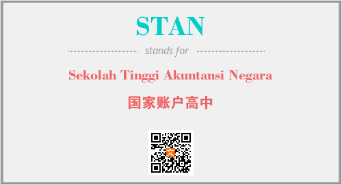 英文缩略词“STAN”经常作为“Sekolah Tinggi Akuntansi Negara”的英文缩写来使用,中文表示:“国家账户高中”。本文将详细介绍英文缩写词STAN所代表英文单词,其对应的中文拼音、详细解释以及在英语中的流行度。此外,还有关于缩略词STAN的分类、应用领域及相关应用示例等。