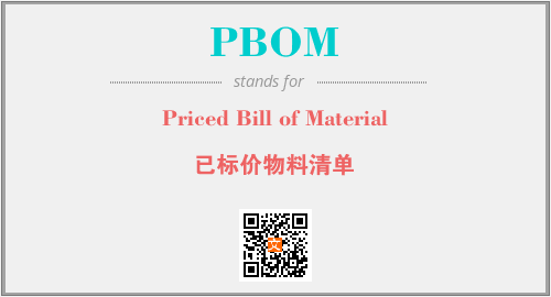 英文缩略词“PBOM”经常作为“Priced Bill of Material”的英文缩写来使用,中文表示:“已标价物料清单”。本文将详细介绍英文缩写词PBOM所代表英文单词,其对应的中文拼音、详细解释以及在英语中的流行度。此外,还有关于缩略词PBOM的分类、应用领域及相关应用示例等。