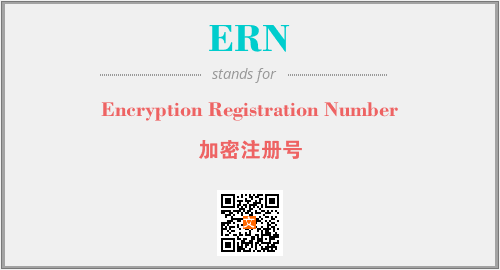 上述内容是“Encryption Registration Number”作为“ERN”的缩写,解释为“加密注册号”时的信息,以及英文缩略词ERN所代表的英文单词,其对应的中文拼音、详细解释以及在英文中的流行度和相关分类、应用领域及应用示例等。