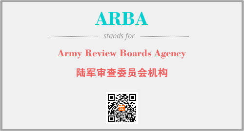 英文缩略词“ARBA”经常作为“Army Review Boards Agency”的英文缩写来使用,中文表示:“陆军审查委员会机构”。本文将详细介绍英文缩写词ARBA所代表英文单词,其对应的中文拼音、详细解释以及在英语中的流行度。此外,还有关于缩略词ARBA的分类、应用领域及相关应用示例等。