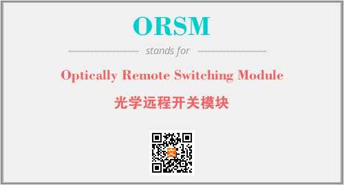 英文缩略词“ORSM”经常作为“Optically Remote Switching Module”的英文缩写来使用,中文表示:“光学远程开关模块”。本文将详细介绍英文缩写词ORSM所代表英文单词,其对应的中文拼音、详细解释以及在英语中的流行度。此外,还有关于缩略词ORSM的分类、应用领域及相关应用示例等。