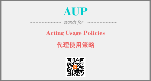 上述内容是“Acting Usage Policies”作为“AUP”的缩写,解释为“代理使用策略”时的信息,以及英文缩略词AUP所代表的英文单词,其对应的中文拼音、详细解释以及在英文中的流行度和相关分类、应用领域及应用示例等。