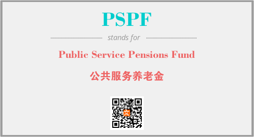 上述内容是“Public Service Pensions Fund”作为“PSPF”的缩写,解释为“公共服务养老金”时的信息,以及英文缩略词PSPF所代表的英文单词,其对应的中文拼音、详细解释以及在英文中的流行度和相关分类、应用领域及应用示例等。