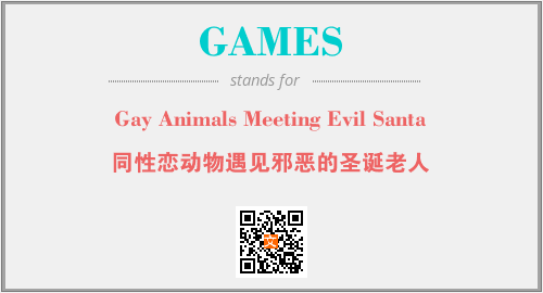 以上为Gay Animals Meeting Evil Santa英文缩略词GAMES的中文解释,以及该英文缩写在英语的流行度、分类和应用领域方面的信息。