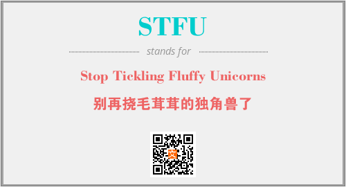 以上为Stop Tickling Fluffy Unicorns英文缩略词STFU的中文解释,以及该英文缩写在英语的流行度、分类和应用领域方面的信息。