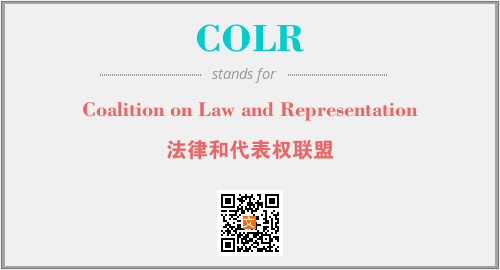 以上为Coalition on Law and Representation英文缩略词COLR的中文解释,以及该英文缩写在英语的流行度、分类和应用领域方面的信息。