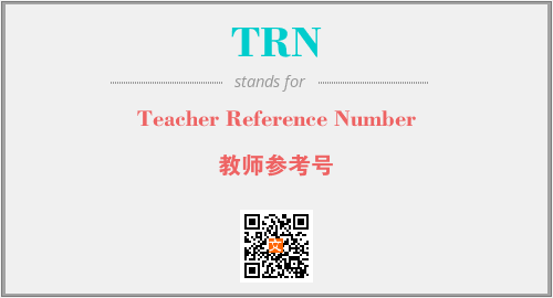 英文缩略词“TRN”经常作为“Teacher Reference Number”的英文缩写来使用,中文表示:“教师参考号”。本文将详细介绍英文缩写词TRN所代表英文单词,其对应的中文拼音、详细解释以及在英语中的流行度。此外,还有关于缩略词TRN的分类、应用领域及相关应用示例等。