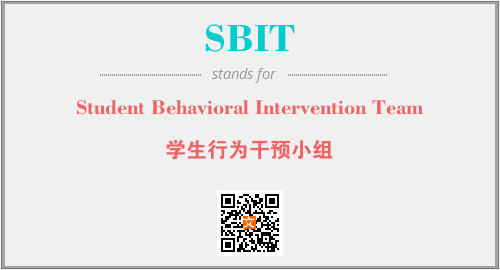 英文缩略词“SBIT”经常作为“Student Behavioral Intervention Team”的英文缩写来使用,中文表示:“学生行为干预小组”。本文将详细介绍英文缩写词SBIT所代表英文单词,其对应的中文拼音、详细解释以及在英语中的流行度。此外,还有关于缩略词SBIT的分类、应用领域及相关应用示例等。