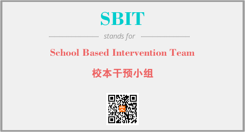 上述内容是“School Based Intervention Team”作为“SBIT”的缩写,解释为“校本干预小组”时的信息,以及英文缩略词SBIT所代表的英文单词,其对应的中文拼音、详细解释以及在英文中的流行度和相关分类、应用领域及应用示例等。