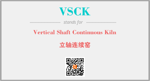 英文缩略词“VSCK”经常作为“Vertical Shaft Continuous Kiln”的英文缩写来使用,中文表示:“立轴连续窑”。本文将详细介绍英文缩写词VSCK所代表英文单词,其对应的中文拼音、详细解释以及在英语中的流行度。此外,还有关于缩略词VSCK的分类、应用领域及相关应用示例等。