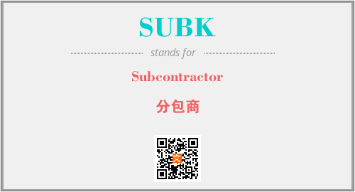 英文缩略词“SUBK”经常作为“Subcontractor”的英文缩写来使用,中文表示:“分包商”。本文将详细介绍英文缩写词SUBK所代表英文单词,其对应的中文拼音、详细解释以及在英语中的流行度。此外,还有关于缩略词SUBK的分类、应用领域及相关应用示例等。