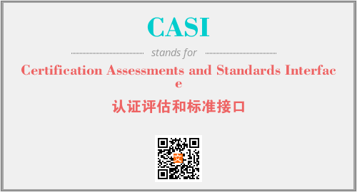 上述内容是“Certification Assessments and Standards Interface”作为“CASI”的缩写,解释为“认证评估和标准接口”时的信息,以及英文缩略词CASI所代表的英文单词,其对应的中文拼音、详细解释以及在英文中的流行度和相关分类、应用领域及应用示例等。