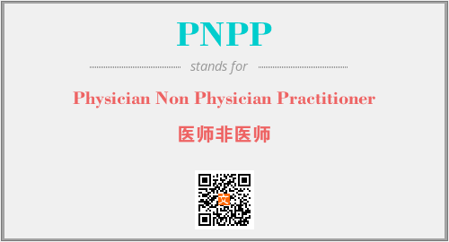 英文缩略词“PNPP”经常作为“Physician Non Physician Practitioner”的英文缩写来使用,中文表示:“医师非医师”。本文将详细介绍英文缩写词PNPP所代表英文单词,其对应的中文拼音、详细解释以及在英语中的流行度。此外,还有关于缩略词PNPP的分类、应用领域及相关应用示例等。