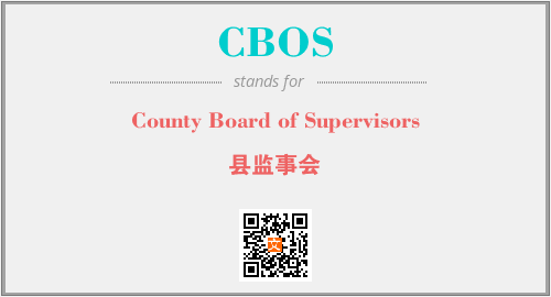 英文缩略词“CBOS”经常作为“County Board of Supervisors”的英文缩写来使用,中文表示:“县监事会”。本文将详细介绍英文缩写词CBOS所代表英文单词,其对应的中文拼音、详细解释以及在英语中的流行度。此外,还有关于缩略词CBOS的分类、应用领域及相关应用示例等。