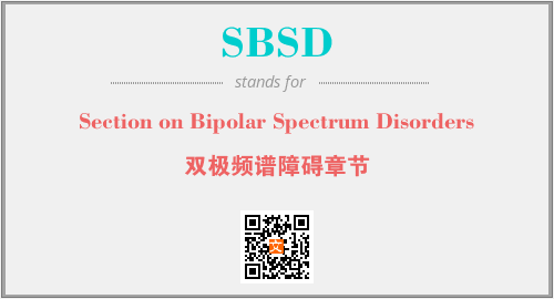 上述内容是“Section on Bipolar Spectrum Disorders”作为“SBSD”的缩写,解释为“双极频谱障碍章节”时的信息,以及英文缩略词SBSD所代表的英文单词,其对应的中文拼音、详细解释以及在英文中的流行度和相关分类、应用领域及应用示例等。